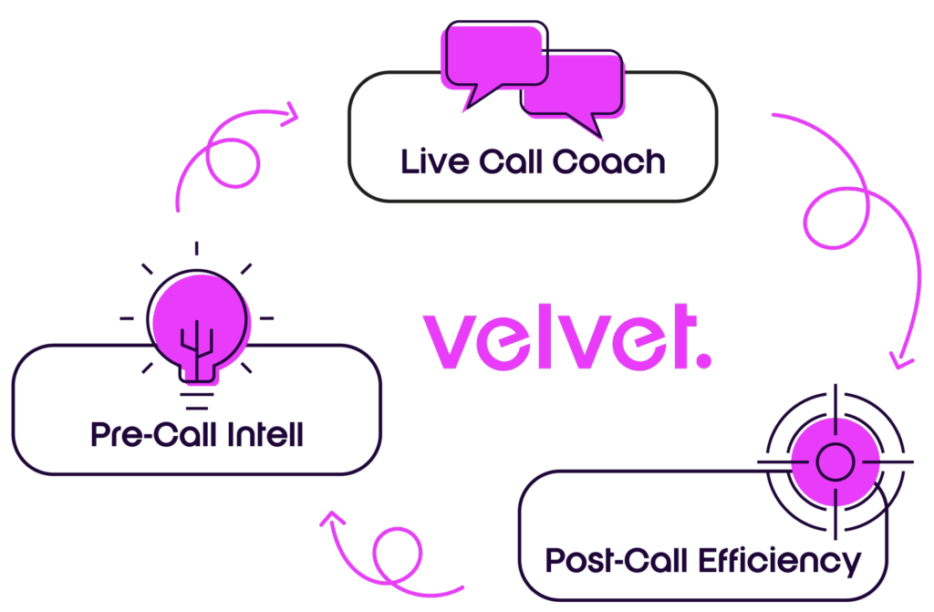 Velvet handles the admin grunt work so you can focus on selling. Get better at discovery, close deals faster, own your development, and create conversations buyers actually value—all without your manager micromanaging every call.